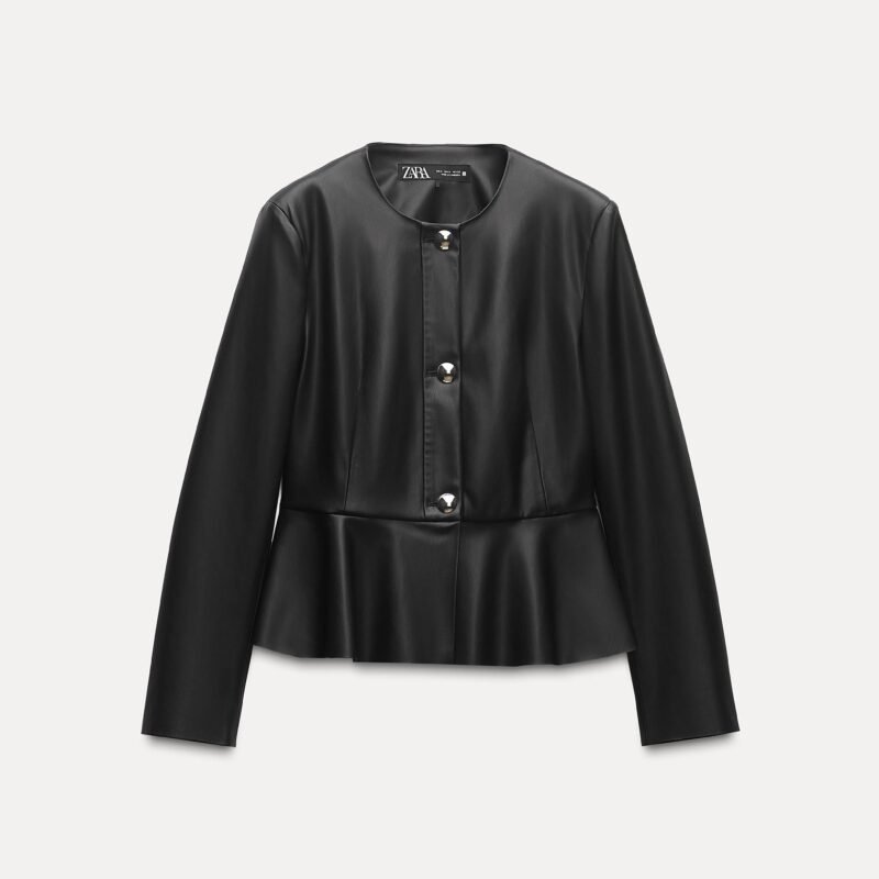 FAUX LEATHER PEPLUM JACKET