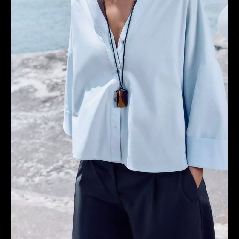 د.م. 170,00CHEMISE EN POPELINE AVEC MANCHES LARGES ZARA WOMEN COLLECTION 2025